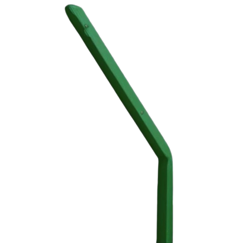 Palo curvo da recinzione sezione a "T" in acciaio laminato con curvatura realizzata direttamente sul palo a sostegno di concertina o filo spinato, completo di foratura per passaggio fili di tensione e punta superiore.
